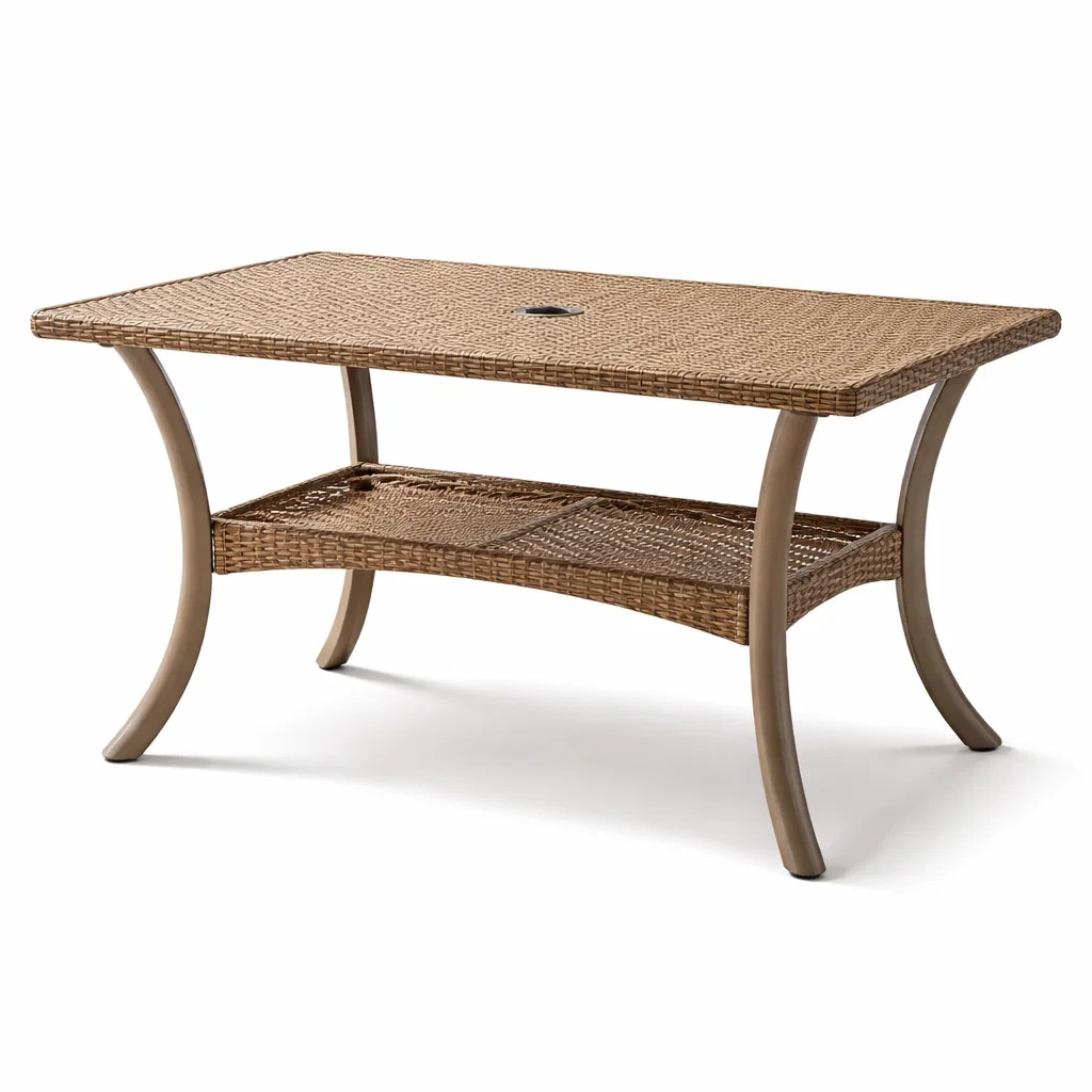 Rechteckiger Gartentisch aus Polyrattan und Aluminium Beige